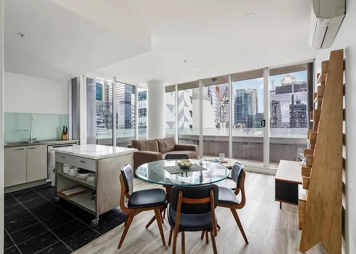 La Trobe Lookout - Poolside Retreat By State Library Apartment offers an equipped kitchenette along with an oven and a dishwasher for your convenience. Flinders Street train station is located within 15 minutes' walk of this accommodation. Enjoy your stay at a sunbathing terrace.